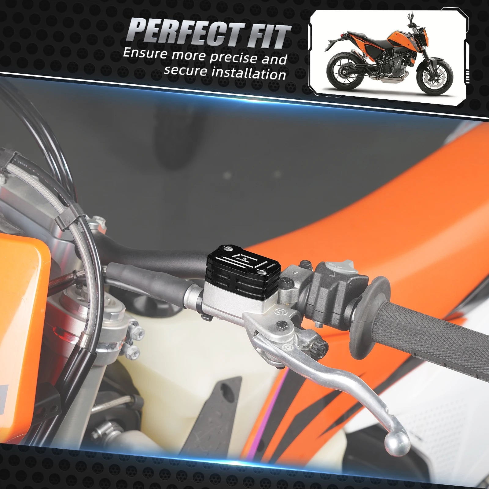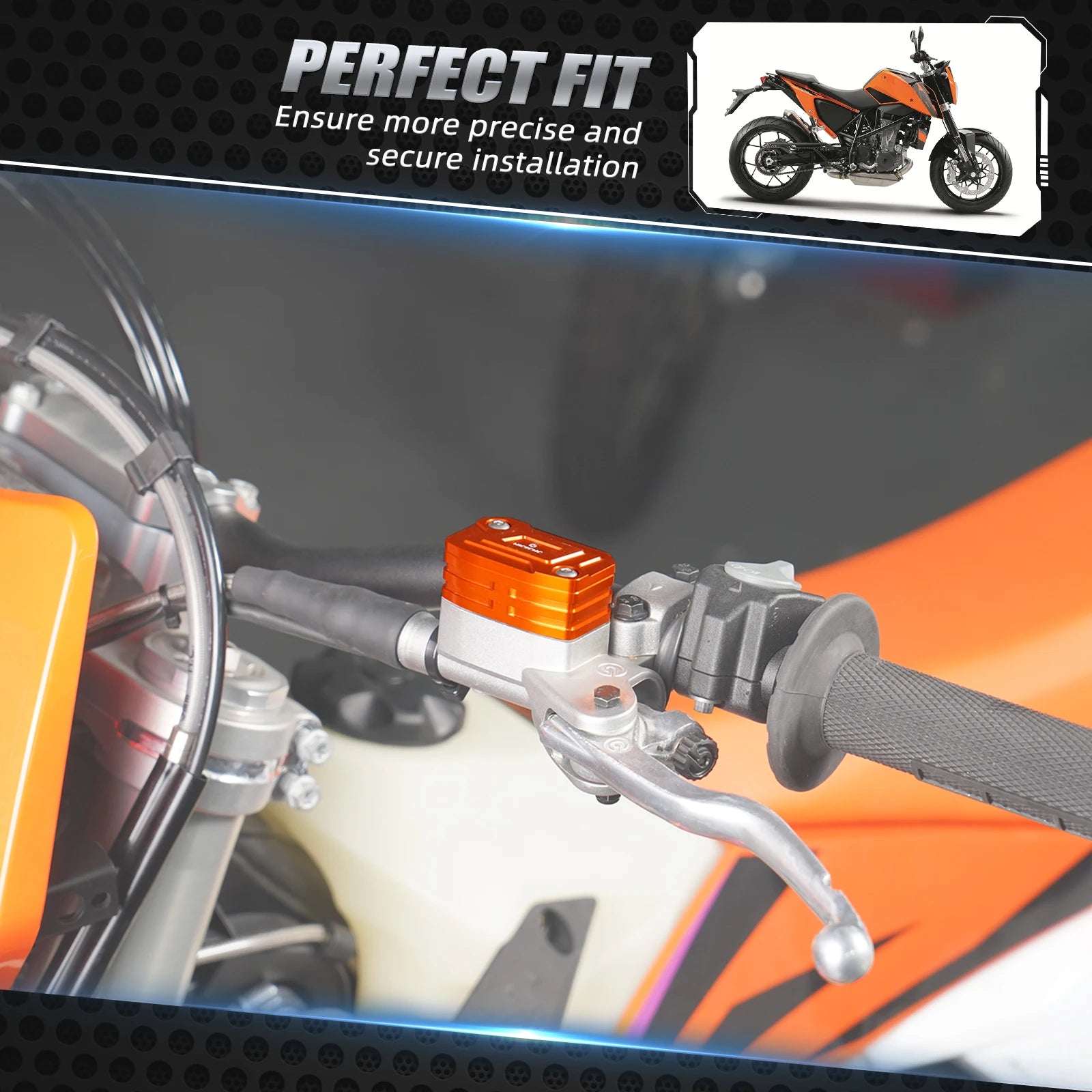 -Cuenta con un volumen 2X más grande que permite que haya suficiente líquido por encima del cilindro maestro para tomar. -Incluye disipadores de calor en la superficie para enfriar el fluido, mejorando la velocidad de enfriamiento en un 200%. -Evita que las burbujas de aire se introduzcan en tu sistema. -Viene con una junta duradera que evita eficazmente que el fluido se filtre más allá del sello. -Hecho de aluminio Premium, que aumenta aún más la velocidad de enfriamiento y garantiza una construcción súper liviana y robusta. -Cuenta con una superficie esculpida y anodizada que encaja perfectamente con las líneas de la bicicleta, dándole un aspecto fresco en las carreras. -Mecanizado utilizando tecnología CNC de vanguardia para garantizar la precisión de cada pieza de corte para una fácil instalación. -Reutiliza el diafragma Brembo de fábrica.